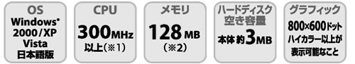 お客様のコンピュータが下記の動作環境を満たしていない場合はソフトが正常に動作しない場合があります。