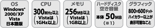 お客様のコンピュータが上記動作環境を満たしていない場合はソフトが正常に動作しない場合があります。